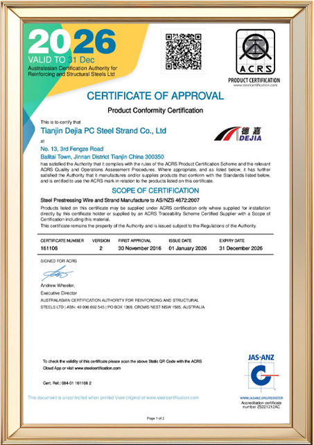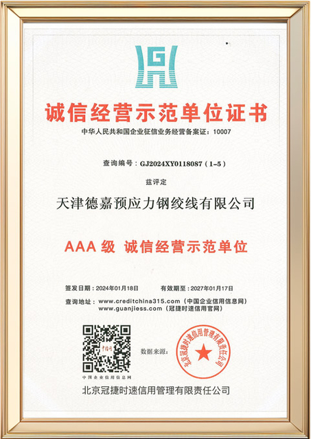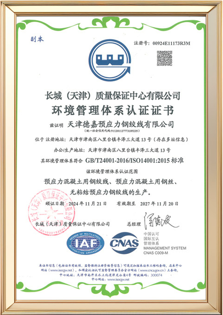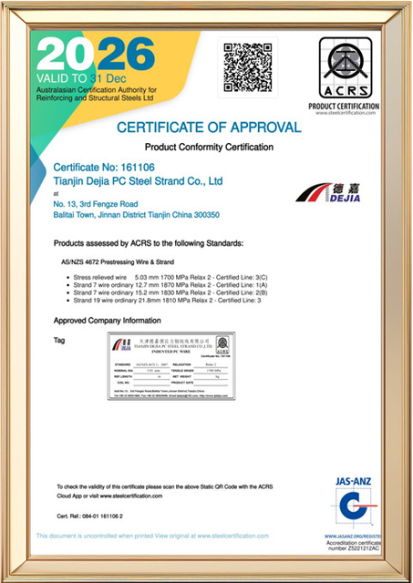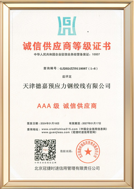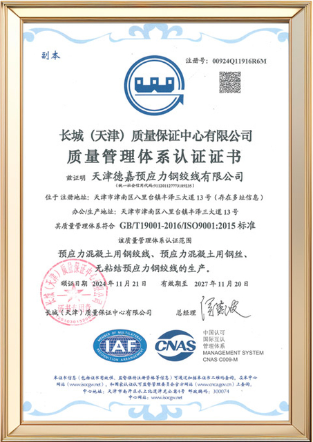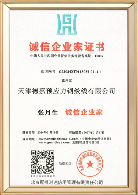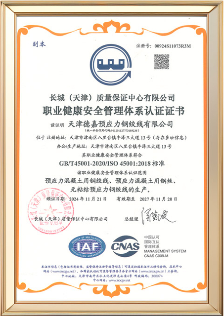 Tianjin Dejia Pc Steel Strand Co., Ltd. located in the Balitai Industrial Park, Jinnan District, Tianjin, has always been guided by a culture of "Integrity and Reliability," taking high-quality products as its foundation and deeply committing itself to the prestressing industry.As a National High-Te