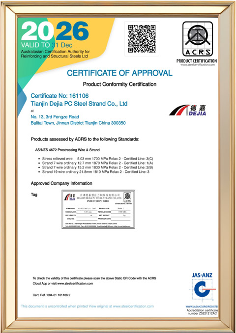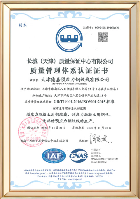 DEJIA was awarded the “Tianjin Famous Brand Product” honor for the first time, signifying authoritative market recognition of its product quality. In the same year, the company initiated R&D on Research and Application of φ7.0mm High-Strength, Low-Relaxation Prestressed Spiral-Ribbed Wire, demonstrating its emerging capabilities in technological innovation.